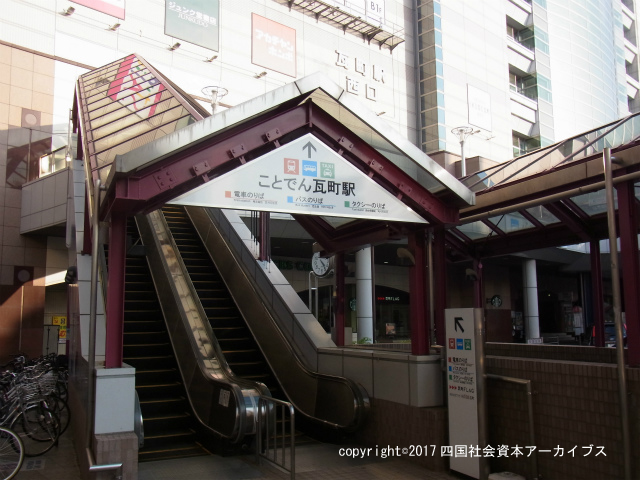 | 概要 | 琴電高松駅(現在の瓦町駅)は昭和2年4月の開通以来、仮駅舎で営業していたが、ターミナルにふさわしい駅とするため、昭和4年11月に起工して新築工事を進め、昭和5年4月竣工と同時に営業を開始した。駅舎の建物の総坪数は181.5坪、鉄筋コンクリート、地上2階地下1階建てで、1階には待合室、駅務室と売店を設け、地下には食堂、2階には運輸事務所を置き、一部には会議室や塩江鉄道など傍系会社の事務所として使用した。約20mの塔屋をもつこの新駅は、高松の南の玄関口としてその偉容を誇っていた。 |