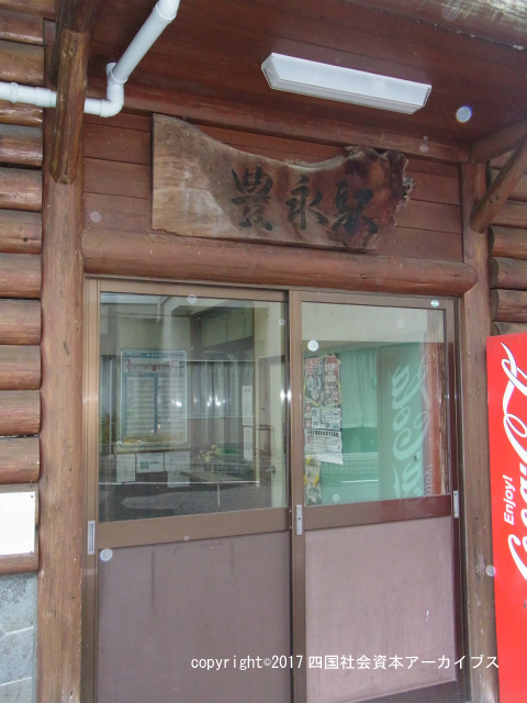概要 | 東土居にある豊永駅は昭和9年10月に開業し、昭和59年2月に簡易委託駅となった。簡易委託駅とは、国鉄が近距離乗車券類の発売などの一部業務を市町村、農協、駅前商店、個人などに委託した駅のことで、分類上は無人駅として扱われる。昭和63年2月には新駅舎が落成し、同年3月から有人駅として復活した。平成2年11月に土日祝日に限り無人化し、平成4年4月から駅員が準社員化(パート)されたが、平成22年9月に完全な無人駅となった。駅周辺の草刈りは山法師会が行っている。 |